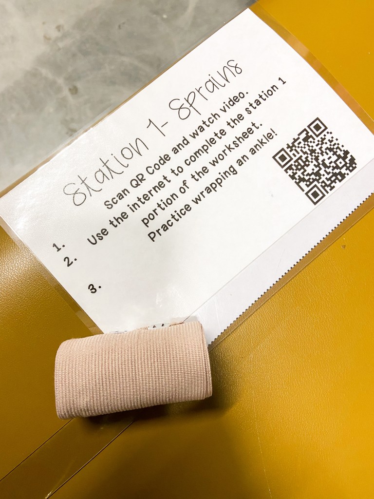 Set Up: I printed the station cards, and the scenario cards, and laminated them so I wouldn’t ever have to do it again. I also printed the worksheets that they would take with them to each station. I also realized I needed ACE bandages for one of the stations so I purchased 3 at the dollar store to use.
