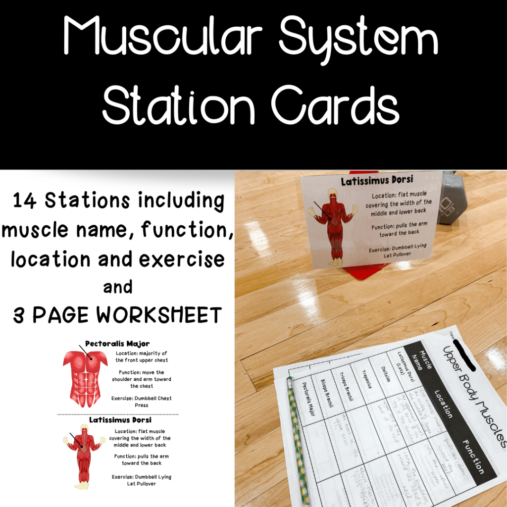- Create circuits or station activities that have a fact/information as well as an exercise that goes along with what you are doing now. I have a few of these up in my TPT, one for the muscular system and one for flexibility! You can see what I mean in the video below of how I set those up. You can do this with a sport skill you are trying to accomplish, or really any information, just make your “fact” and your “exercise” match up.