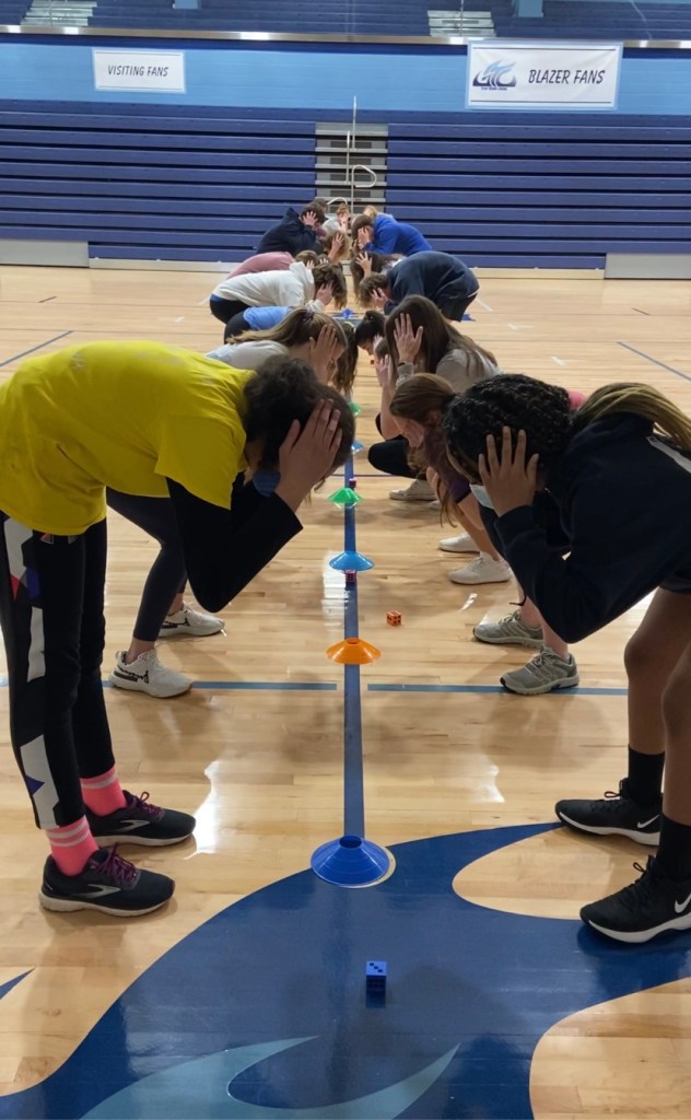 - Add dice activities- student who failed to pick up the cone must roll the dice that corresponds with an exercise. You can make this even more specific and have the exercises all be one type- strength vs cardio vs. flexibility etc.